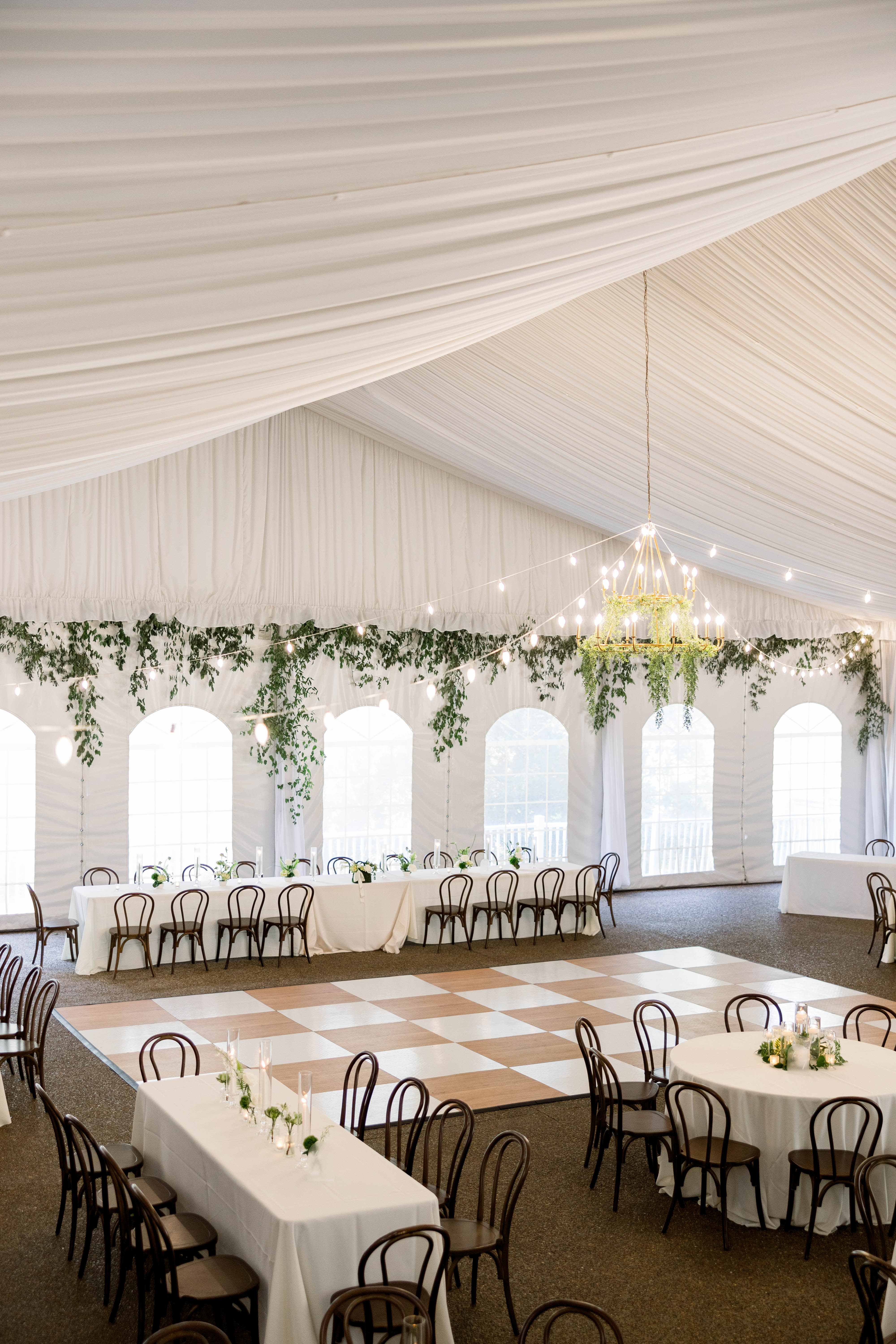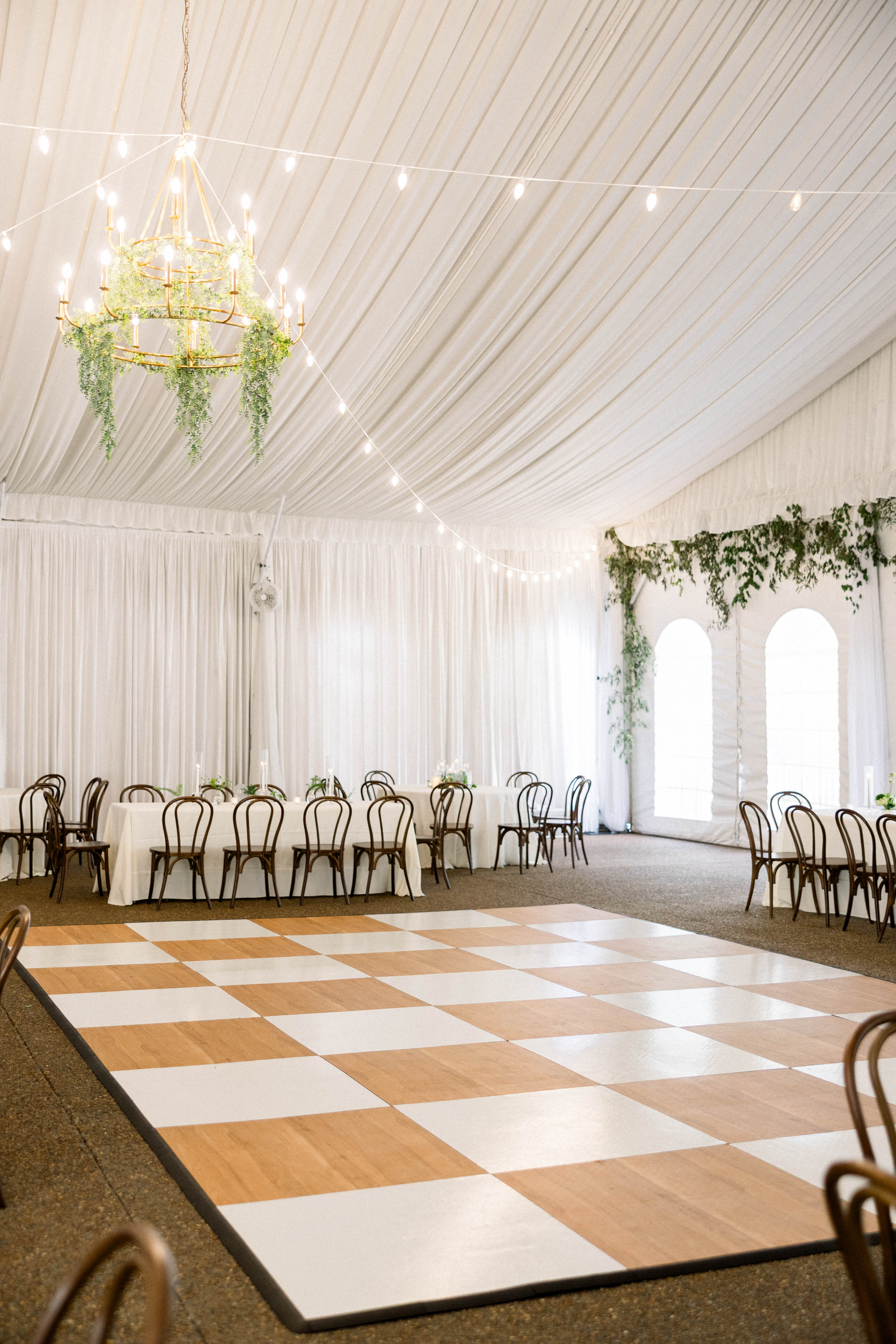 Black-and-white checkered dance floors add a bold, vintage-inspired touch to your event space, perfect for themed parties and retro celebrations.